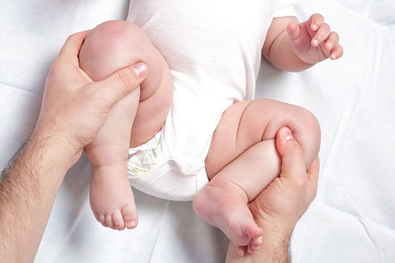 Κρατάει τα ισχία του βρέφους σε απαγωγή, χωρίς να ακινητοποιεί το βρέφος.