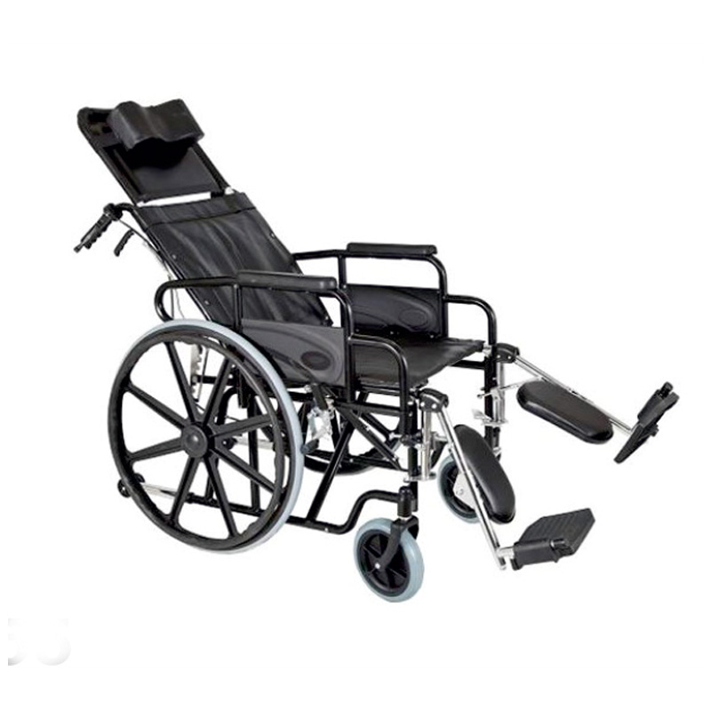 Χαρακτηριστικά: Πτυσσόμενο, με πτυσσόμενα πλαϊνά & ανυψούμενα υποπόδια, με πλήρη ανάκλιση της πλάτης, με αποσπώμενο στήριγμα κεφαλής, με βοηθητικά ροδάκια αντιανατροπής, με φρένα στις χειρολαβές, με συμπαγείς τροχούς πίσω, με ενισχυμένους πίσω τροχούς