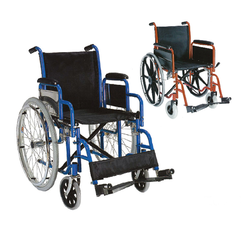 Χαρακτηριστικά: Αμαξίδιο από ατσάλι με προσθαφαιρούμενα πλαϊνά και προσθαφαιρούμενα και ρυθμιζόμενα καθ’ ύψος υποπόδια. Οπίσθιοι μεγάλοι τροχοί με αεροθάλαμο και πρόσθιους μικρούς συμπαγείς και δύο φρένα. Πτυσσόμενο. Υπάρχει δυνατότητα να τοποθετηθεί και δοχείο ανάγκης.