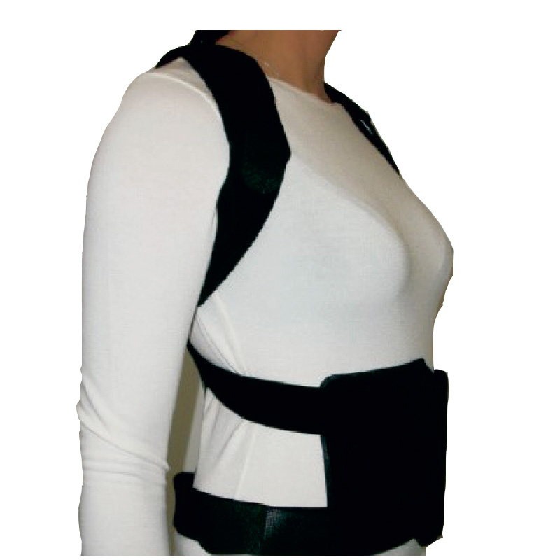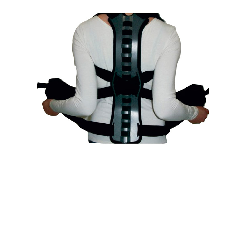 Χαρακτηριστικά: Διαθέτει οπίσθιο μεταλλικό έλασμα κατασκευασμένο από κράμα αλουμινίου με ειδική ανατομική σχεδίαση για άριστη εφαρμογή. Έυκολή διαμόρφωση του ελάσματος ανάλογα με τις ανάγκες του κάθε ασθενή κατά την εφαρμογή. Ελαφριού βάρους 330 γρ. Επενδύσεις αεριζόμενες AIR-COMFORT αντιαλλεργικές, αντιεφιδρωτικές. Διαθέτει ιμάντες έλξης αυτοκόλλητους στους ώμους επενδυμένους με μαξιλαράκια PAD AIR-COMFORT για βαθμιαία έλξη κατά την εφαρμογή. Αυτοκόλλητη ζώνη στο πρόσθιο τμήμα του νάρθηκα με VELCRO. Ο νάρθηκας αφήνει τμήμα της άνω κοιλίας ελέυθερα για άνεση και λειτουργικότητα. Επιτρέπει την καθιστή και την ημικαθιστή θέση. Προλαμβάνει την κύφωση και παραμόρφωση της σπονδυλικής στήλης. Στήριξη της Θ.Μ.Σ.Σ. και Ο.Μ.Σ.Σ. Κατάλληλο για ασθενείς με οστεοπόρωση για μακρά χρονική χρήση. Βελτιώνει τη σωστή στάση του κόρμου σε όρθια θέση. Δεν χρειάζεται συνεχή ρύθμιση του νάρθηκα από τον ασθενή.