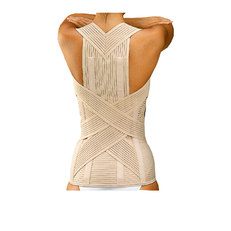 Χαρακτηριστικά:Θωρακοσφυϊκή υποστήριξη από υλικό πολλαπλών ιμάντων που αναπνέει. Με 4 οπίσθιες μπανέλες που συνδυάζονται με 2 χιαστή δέστρες από velcro.