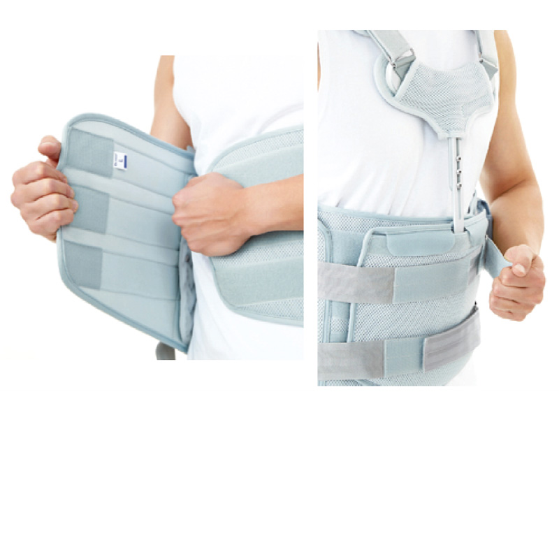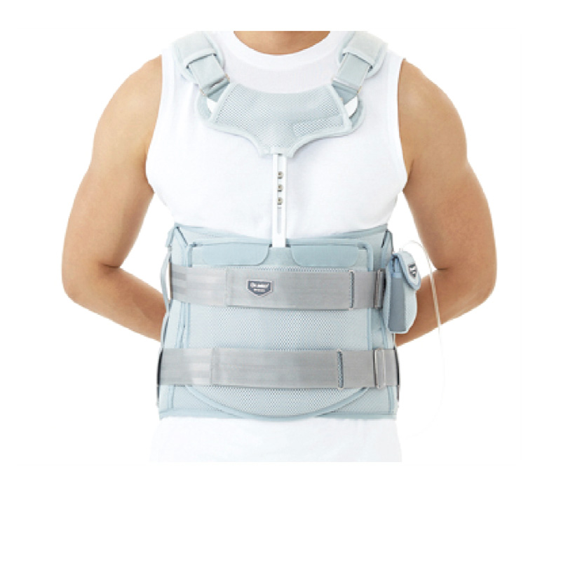 Χαρακτηριστικά: Aποτελείται από οπίσθιο θωρακοοσφυϊκό εργονομικό και ανατομικά σχεδιασμένο τμήμα. Φέρει πρόσθιο στερνικό πίεστρο ρυθμιζόμενου ύψους για έκταση ή υπερέκταση του κορμού. Έχει εσωτερική αφρώδη, μαλακή και υποαλλεργική επένδυση. Αυτοκόλλητη ζώνη με μηχανισμό βαθμιαίας αύξησης συμπίεσης και σταθεροποίησης του κορμού. Ρυθμιζόμενες τιράντες στήριξης της σπονδυλικής στήλης με ενσωματωμένα μαξιλαράκια ώμου. Επιδέχεται εφαρμογής αυτοκόλλητου συστήματος αεροθαλάμων για την αποφόρτιση της σπονδυλικής στήλης.